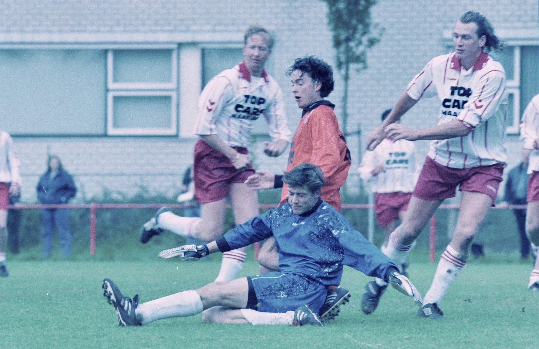 De ploeg van trainer Ger Boer had een zeer moeizaam seizoen. Berry Smit en Wim Kras gaven op het laatste moment te kennen naar ZPC in Amsterdam te vertrekken en Carlo Kwakman (Spiering) besloot op zaterdag te gaan voetballen. Er kwam versterking van de Urker Klaas Nentjes. Ger Boer kon ternauwernood een team op de been brengen in het bekertoernooi en bij de start van de competitie. De punten bleven uit en vanaf het begin bungelde Volendam (rkav) bij de onderste plaatsen. Pas in de slotfase van de competitie wist Volendam (rkav) te ontsnappen van de directe degradatieplaatsen. Via twee overwinningen op SVW’27 (2-1) en Beverwijk (3-1) kwam het boven de streep te staan. Maar mede door het verlies tegen Kennemers (3-0) en WSV’30 (0-2) kwam het toch weer op de laatste plaats terecht. Het moest op de slotdag winnen van Kolping Boys en was dan nog afhankelijk van de concurrenten Beverwijk, WGW en De Brug. Volendam won op eigen veld met 3-2 van Kolping Boys en streefde WGW en Beverwijk voorbij. De Brug won en was daarmee helemaal gevrijwaard van degradatiewedstrijden. In de nacompetitie moest Volendam (rkav) aantreden tegen Vitesse’22 en Purmersteijn. Via een 2-2 gelijkspel en een verlies van 1-0 werd Volendam (rkav) tweede en degradeerde daarmee naar de 3e klasse. Echter één week later kwam er een telefoontje vanuit de KNVB. Omdat de Amsterdams club ZAP (wegens geld en kaderleden) was opgeheven, mochten UVV uit Utrecht en Volendam (rkav), als tweede geëindigd in de nacompetitie strijden om de opengevallen plaats in 2e klasse. Die kans liet het zich niet ontlopen. Op het veld van Legmeervogels in Uithoorn won Volendam (rkav) met 5-2. Voor rust zag het echter heel anders uit. Het mocht de handen dichtknijpen en vooral keeper Marcel Loch bedankten dat het met rust nog maar 1-1 stond. Na rust deed Henri Bond zijn naam als goaltesdief eer aan. Hij was 2x keer koelbloedig in de afronding. Johan Hoogland, die voor rust ook al scoorde, en Nico Runderkamp tilden de eindstand naar 2-5. “We hebben er één jaar overgedaan om te degraderen en nu zijn we in één week gepromoveerd”, vertelde trainer Ger Boer na afloop. “Ik ben blij met het onverwacht goede afscheid, het is beter zo”. |