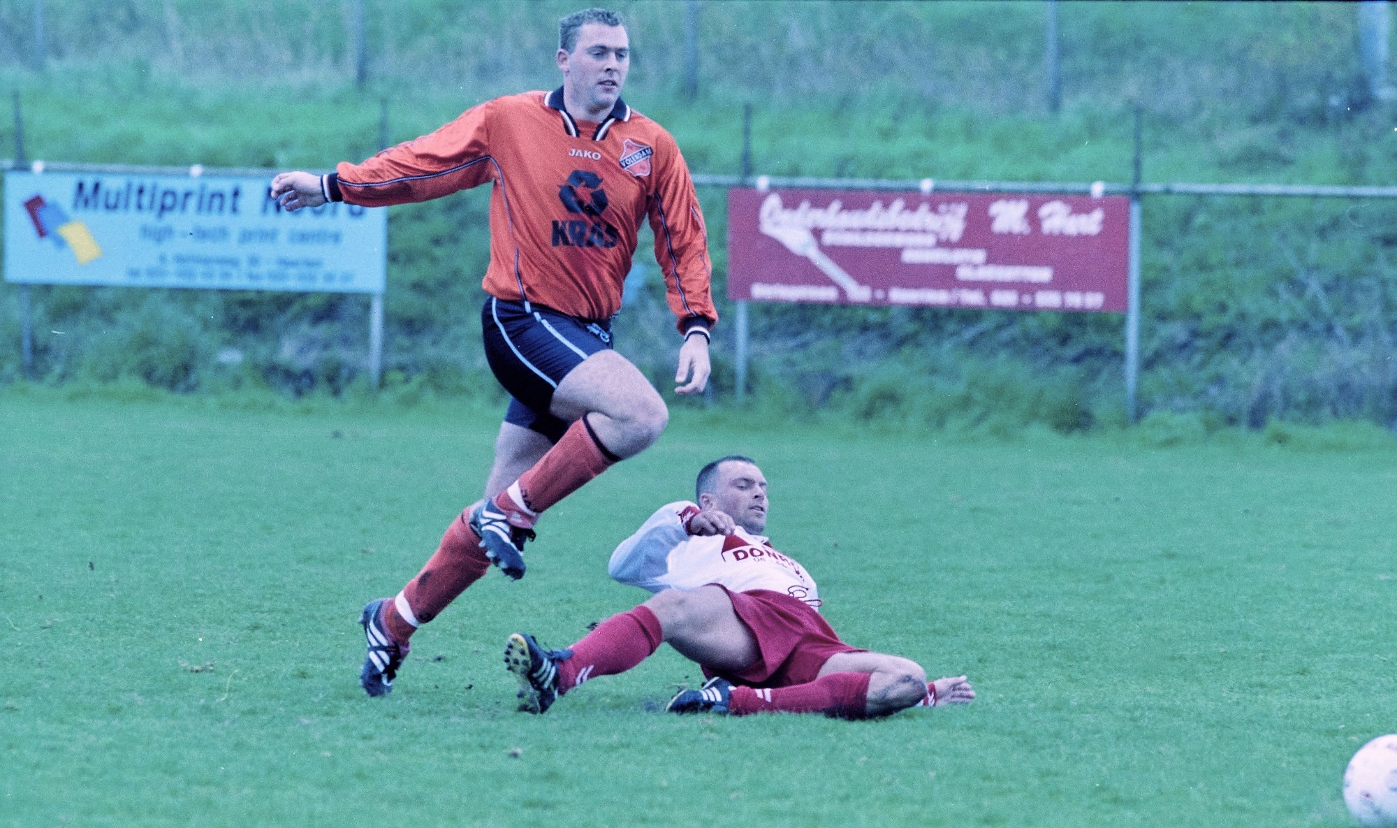 Trainer Theo Mooijer was dit seizoen niet te benijden. Uit de eerste 8 wedstrijden peurde zijn ploeg nog tien punten, maar uit de volgende reeks van acht slechts twee. Bij de ploeg ontbrak het ‘heilige vuur’ om te overleven. Zo was de trainingsopkomst niet optimaal, speelde men in een te laag tempo en gingen veel persoonlijke duels verloren. Daarnaast hadden veel spelers vaak nog de zware zaterdagavond in de benen. Rond de paasdagen in april 2001 kwam opeens een kentering en leek het toch nog te gaan lukken om degradatie te ontlopen. Twee doordeweekse duels werden gewonnen: SVW’27 (2-4) en Zouaven (2-1). Toen kwamen concurrent De Brug en WSV’30 op bezoek. Volendam (rkav) gaf echter niet thuis en beide wedstrijden eindigde in een gelijkspel. Het opeenvolgende verlies tegen Hellas Sport en op de slotdag tegen Velsen bezegelde het lot. Theo Mooijer reageerde na afloop teleurgesteld: “We hebben het niet hier laten liggen. Tegen onze concurrent De Brug laten we vijf punten liggen. Verder is het een gebrek aan trainen en onvoldoende kwaliteit. De jongens wijzen elkaar niet op hun verantwoordelijkheden”. |
