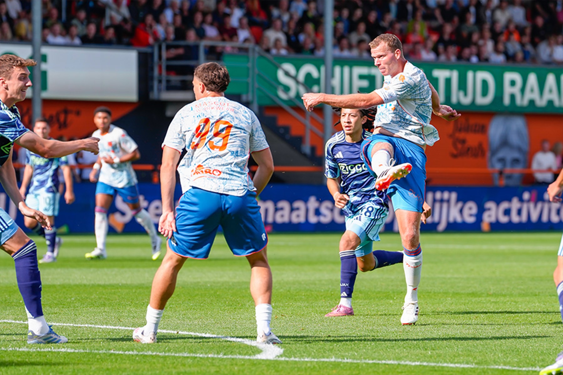 | Bijzonderheden | In het eerste kwartier speelde Ajax verdienstelijk en drukte het FC Volendam ver naar achteren. Maar toch kwamen de Amsterdammers achter, toen Henk Veerman de bal van twintig meter uit de lucht plukte en in de bovenhoek mikte. Die onverwachte goal deed FC Volendam goed en deed Ajax bevriezen. De hele eerste helft bleven de bezoekers worstelen: kansen creëeren lukte nauwelijks. Kenneth Taylor dacht even de 1-1 te hebben gemaakt, maar Raúl Moro bleek buitenspel te hebben gestaan. Bij FC Volendam excelleerde Gibson Yah op het middenveld. De middenvelder onderschepte veel en was ook aan de bal sterk. Ajax-trainer Heitinga greep in de rust in en wisselde Oscar Gloukh voor Oliver Edvardsen, wellicht in de hoop wat meer diepgang in het Ajax-spel te krijgen. Dat hielp mondjesmaat, maar na ongeveer een uur kwam Ajax toch tot scoren. Een corner werd doorgekopt door Wout Weghorst en binnengetikt door de Japanner Ko Itakura. Daarna ging Ajax op jacht naar de winnende, maar de Volendamse defensie bleef lang gemakkelijk overeind. De grootste kans was uiteindelijk nog voor de thuisploeg. Anthony Descotte brak door, maar kon Vitezslav Jaros net niet verschalken. | |||