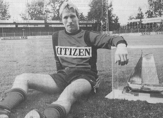 Johan Kroon (Mate) toont hier de gewonnen Zilveren Botter uit 1983. Hij bereidde in de finale de gelijkmaker voor en maakte 1 minuut voor tijd de winnende treffer met een prachtige volley van 20 meter. Hij was een benadigd dribbelaar en had aan zelfvertrouwen geen gebrek: “Ik ben de beste zonder enige zelfspot.” Hij was een groot talent die voorin links en rechts uit de voeten kon. Hij was in die periode de topscorer van het tweede elftal. Toch kon hij de verwachtingen nooit echt waarmaken. Hij bleef steken op 6 optredens in het eerste elftal, waarin hij 2 keer scoorde.